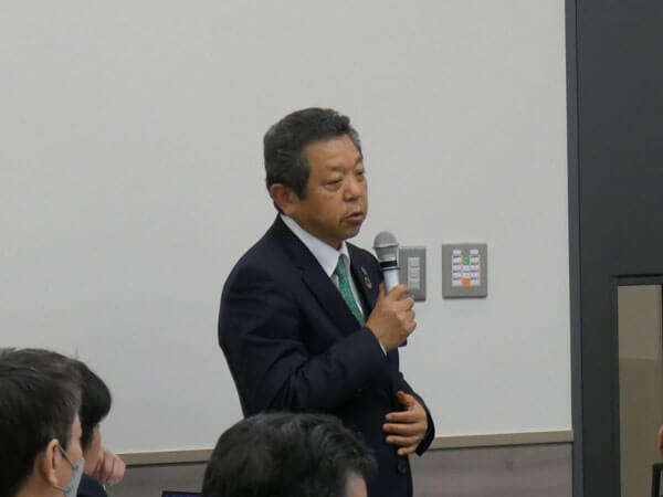 講演は全部で充実の4本立てでしたが、冒頭に宮越会長が大阪地区の万博やプロ野球の盛り上がりに言及しつつ、これまでとこれからのABAの活動に変化が生じている旨を述べました。つまり、ABAは創業以来、日本建築仕上学会での環境配慮型塗装標準仕様として、クロムやVOCなどの有害物質の除去・抑制に重点をおいた活動してきました。しかし、昨今の環境問題に対する潮流はカーボンニュートラルに向かって既に動いており、ABAとしては今後避けて通れないテーマである、と断言しました。このため、今回は4名の講師にそれぞれ異なる切り口でカーボンニュートラルについてご講演いただき、今後の個々の企業及びABAの事業活動のヒントにしたい、と講演会の主旨を説明しました。