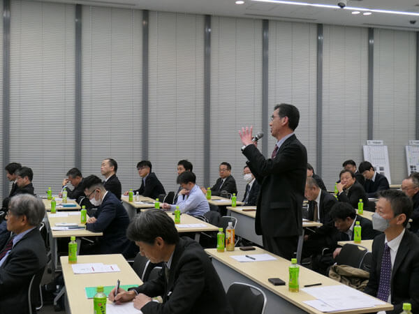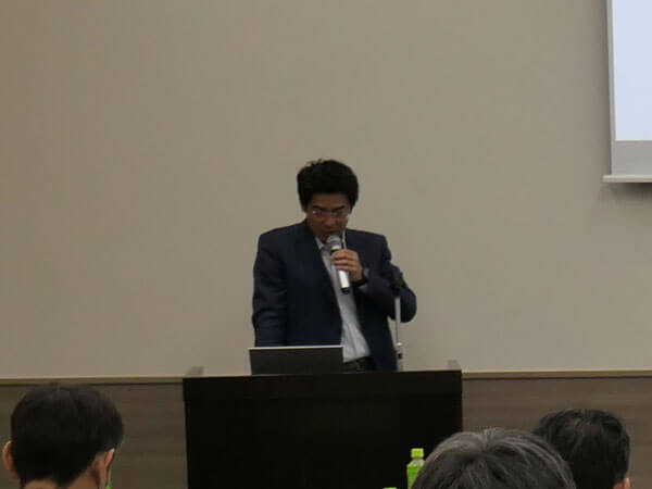 2本目のご講演は、昨年9月にも福岡で講師を受けてくださった石井氏(当時関西ペイント㈱日本汎用事業部門工業塗料本部市場開発G部長で講演時はカンペ商事取締役執行役員)が前回の講演内容の進化版として「ESGと脱炭素~持続可能な環境貢献と事業成長~Part2」をご披露頂きました。講演では日本を取り巻いている国際的な外部環境の話を前回にプラスαしてご説明頂いた上で、少しずつ明らかになった日本版のSDGsと脱炭素の規制やGXリーグなど官民一体の取り組みなどを教えていただきました。日本を代表する有名な優良な大企業法人でさえ、もしいま議論されている通りに法案が可決すれば赤字に転落する程のインパクトがあるといわれる税負担を含む法規制がこれからいよいよ具体化されていきます。我々中小企業も対岸の火事ではなく、自分のこととして今のうちから中期的に取り組む必要性を感じました。また講演終盤には関ペさんの環境対応の塗料の紹介がありました。質疑応答の時間でもかなりの時間、環境対応塗料に関する具体的な質問などに割かれていましたことは、聴講者の高い関心の表れだと思います。