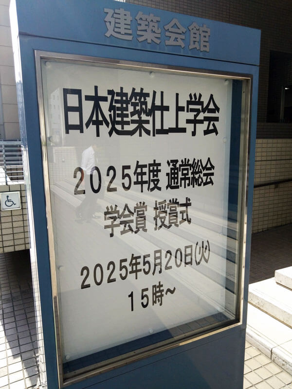 地球温暖化の影響か、毎年5月にもなると真夏かと間違える日が何日も続く年が近年は継続的に続いています。そして、東京都港区芝にある建築会館内ホールにおいて、日本建築仕上学会2025年度の通常総会が行われましたが、どういうわけか今年も例年に違わずカンカン照りの日でありました。
