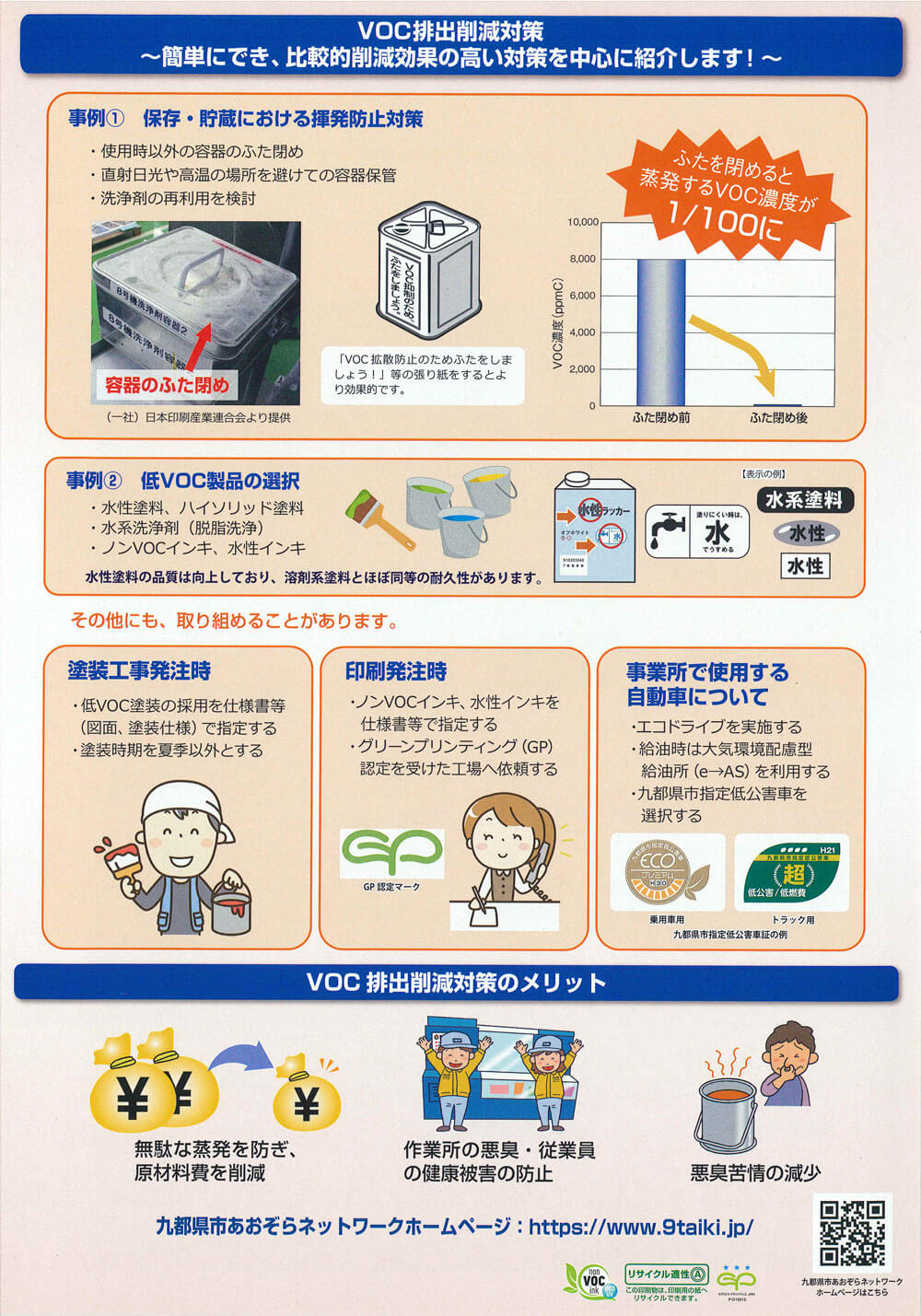 会員各社の皆様方におかれましては、上掲載のパンフレットをご一読いただき、溶剤系塗料の使用量削減や粉体塗装の積極的採用などにより、引き続きVOC削減への取組をしていただけるようよろしくお願い申し上げます。また、自主的取組にご興味がある方はABA事務局までご連絡ください。