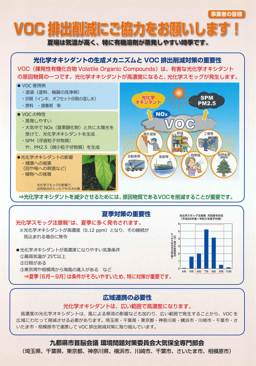 そのため、今年度、経済産業省より下記の光化学スモッグ低減に向けた対策の推進=VOC排出削減協力の夏季キャンペーンがありましたことを、会員の皆様へご連絡をしておきます。
