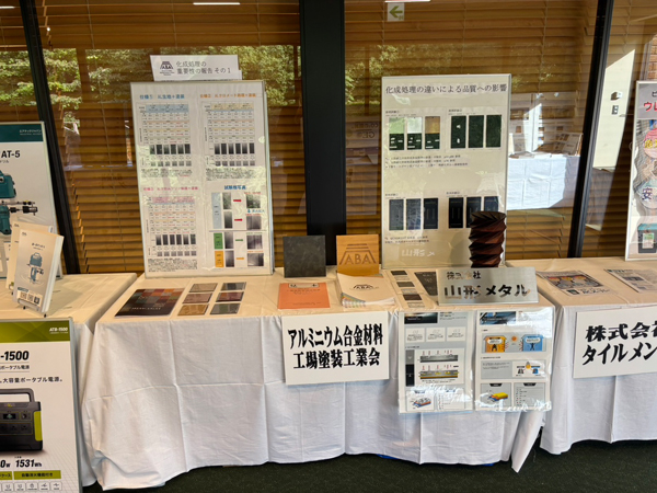 ABAでは「化成処理の違いによる品質の影響」と「巷で見かける危ない仕上比較」と題した、コロナ中~現在まで観察している各種塗装や塗装以外の仕上の比較実験(促進試験や暴露試験データ)を展示いたしました。出席した大手ゼネコンの技術関連の方たちも皆さん足を停めて説明を聞いてもらえました。またABAではカタログの他、資格認定試験の紹介なども行いました。